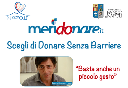 Testimonial della campagna, sostenuta da Fondazione Banco di Napoli e Meridonare, l’attore Davide Devenuto
